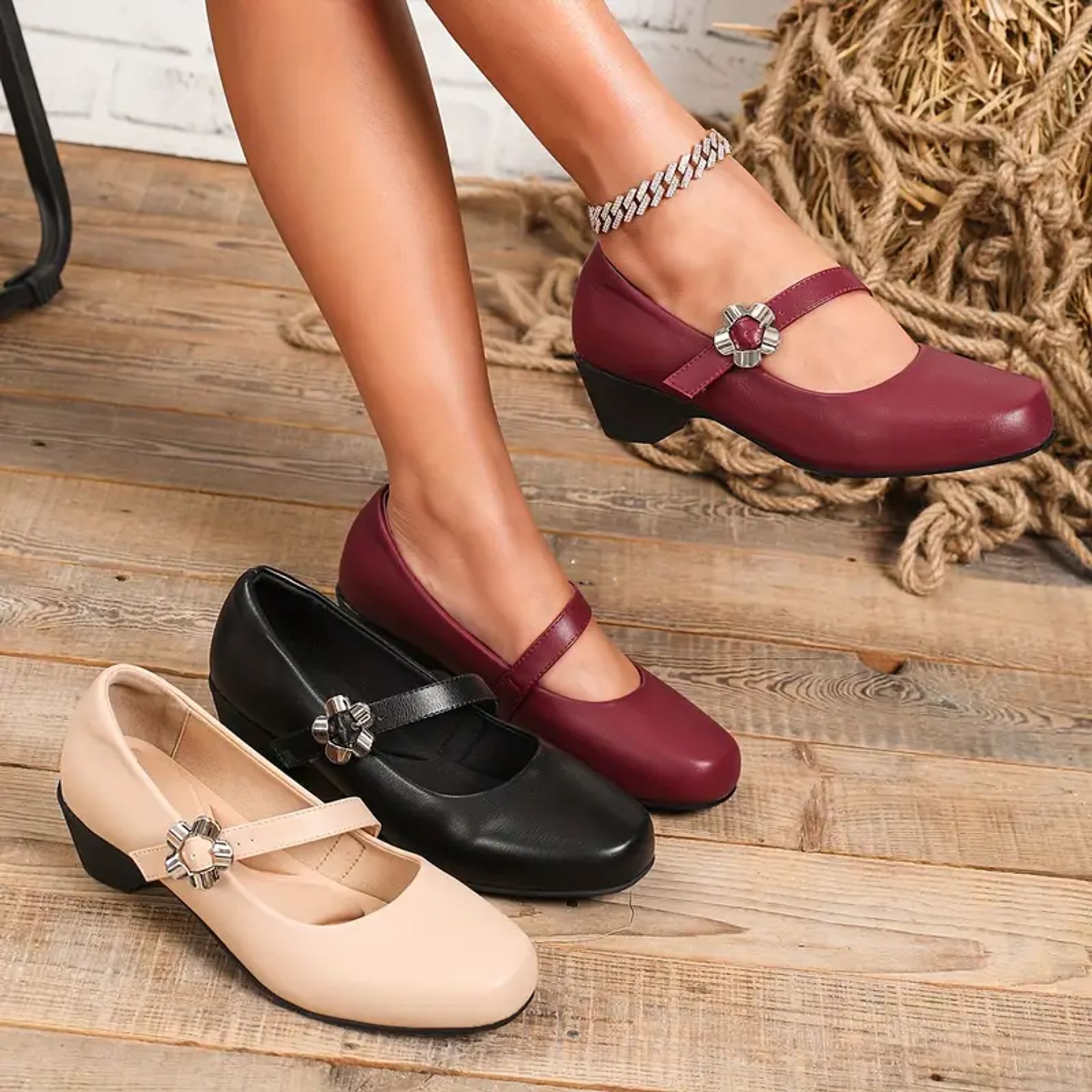 📢🔥Summer Best Seller🔥 2025 Women's Elegant Mary Jane Shoes – Round Toe, Comfy Block Heel, Cushioned Insole & Decorative Buckle
